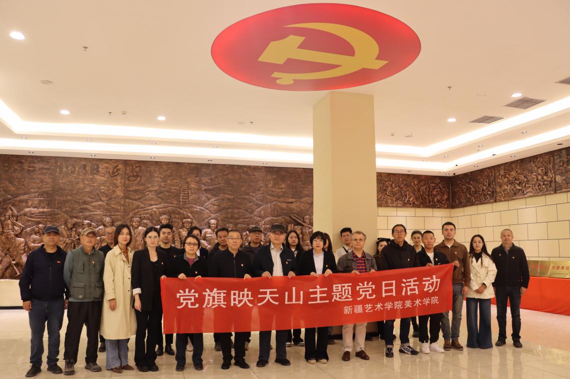为深入学习贯彻党的二十届三中全会精神,庆祝中华人民共和国成立75周年,弘扬革命精神,强化党员干部党性和纪律教育,传承红色基因,赓续红色血脉,美术学院于2024年9月21日组织全体党员干部教师前往乌鲁木齐市安宁渠新疆红色文化展览馆开展“党旗映天山”主题党日活动。
