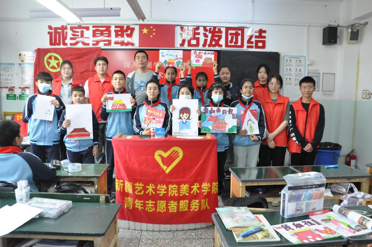 为弘扬传承中华优秀传统文化,充分发挥学校文化艺术服务地方文化事业发展的作用,促进校地交流,2023年5月23日,美术学院与乌鲁木齐市天山区南湾街管委会延安路社区党总支联合开展了“绘画艺术进社区-主题实践活动,美术学院青年志愿者服务队走进了乌鲁木齐市第十小学,向各年级的学生们展示并介绍了扎染、手工衍纸、剪纸、山水画、版画等丰富多彩的美术作品的制作和创作手法以及技巧,并带领学生们现场一起绘制了“我和我的祖国”、“中国年画”“我的妈妈”等为主题的绘画作品,同学们用不同的题材和表现手法进行创作,一幅幅主题鲜明、色彩明快、生动活泼的绘画作品为校园增添了艺术气息,营造了浓厚的校园文化氛围,推动了各族学生对中华优秀传统文化的进一步了解,同时展现了美术学院学子良好的精神风貌。下一步,美术学院将持续开展服务地方文明建设的主题实践活动,积极践行社会主义核心价值观,努力为社会文化事业发展做出应有贡献。