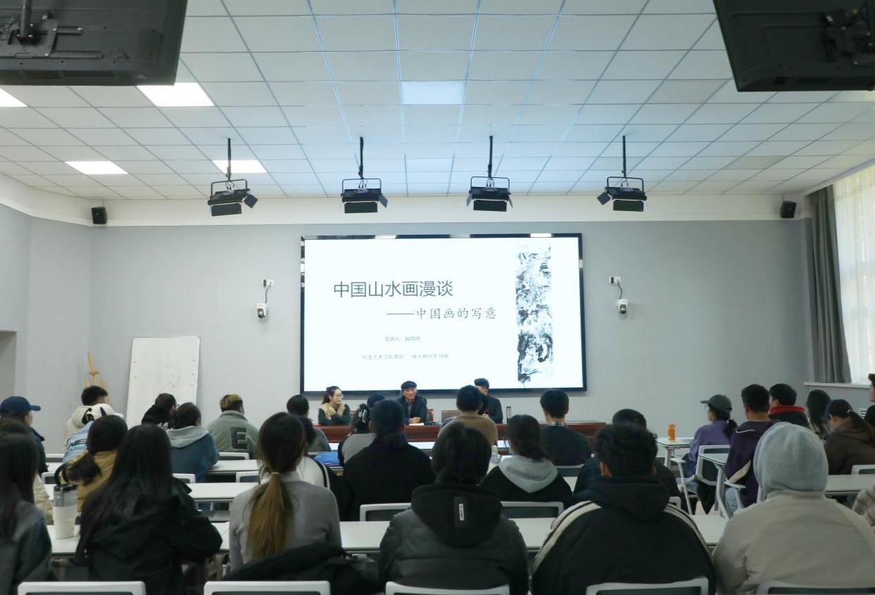 2024年10月31日,我校“天池学者”特聘教授姚鸣京老师受邀在美术学院为国画专业的师生做了山水画专题讲座及公开示范课。在讲座中,他结合自身的创作经验,为师生们讲解了山水画的历史渊源与发展脉络。他从传统山水画的经典技法讲起,分析了具有代表性的历代山水画及代表画家的艺术理念,并详细讲解了他们的艺术风格和时代特征。