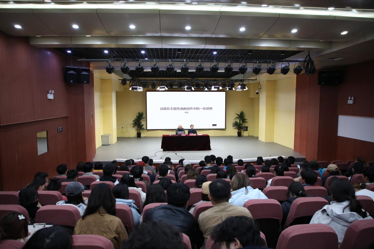 为深化美术学科教学与创作实践的融合,推动专业建设迈向新高,牢固树立铸牢中华民族共同体意识,新疆艺术学院美术学院于2025年10月28日在学术报告厅举办《谈我在主题性油画创作中的一些感想》专题讲座。本次讲座由新疆艺术学院研究生导师,著名油画家,第十四届全国美展金奖获得者、上海戏剧学院教授李前老师担任主讲人,新疆艺术学院美术学院院长波里亚主持。