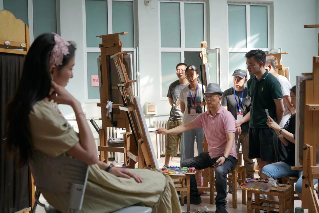 外光写生环节,邀请了中央美术学院袁元老师、刘霞飞老师、殷嘉贺老师以及中央美院的研究生共同参与。教学中,教师们采用写生示范、集中讲评等教学方式引导学员绘画色彩饱满、意蕴丰富的风景作品,使学员对色彩与风景写生的理解得到了明显提高。