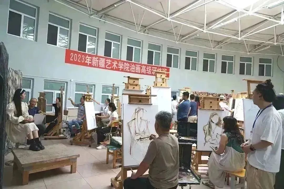 “新疆艺术学院2023年油画高级研修班”通过课堂教学、户外写生、后期创作,近期圆满落幕。 高研班学员主要由新疆各高校、各地区文化艺术团体及基层美术工作者组成,由新疆艺术学院美术学院院长、中央美术学院教授贺羽负责课程设计和日常教学工作。