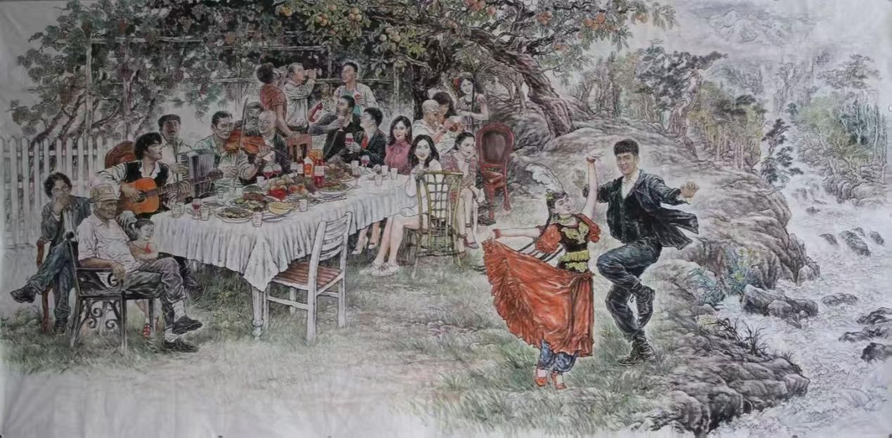 努尔买买提·阿布力孜《欢乐》136×274cm 宣纸水墨