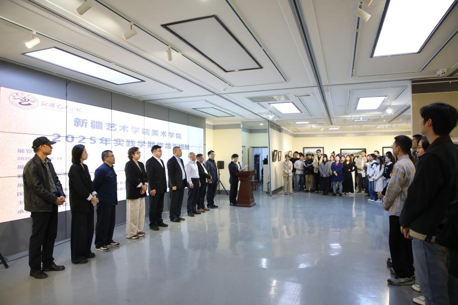 9月16日,新疆艺术学院美术学院2025年实践学期作品汇报展在团结校区美术馆开幕。学校党委常委、副院长全立新出席并讲话,党委常委、宣传部部长周达疆宣布展览开幕。学校相关部门负责人、各学院师生代表180余人参加开幕式。