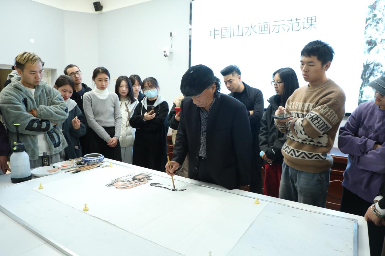 20241031日,我校“天池学者”特聘教授姚鸣京老师受邀在美术学院为国画专业的师生做了山水画专题讲座及公开示范课。在讲座中,他结合自身的创作经验,为师生们讲解了山水画的历史渊源与发展脉络。他从传统山水画的经典技法讲起,分析了具有代表性的历代山水画及代表画家的艺术理念,并详细讲解了他们的艺术风格和时代特征。