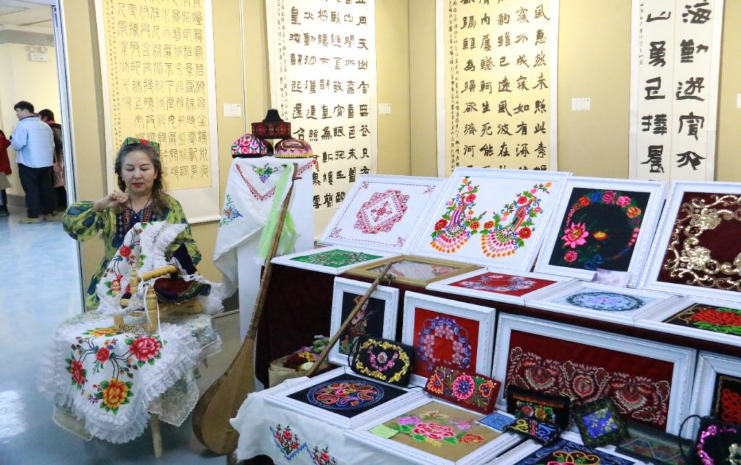 活动中,延安路社区居民向在场观众展示了以中华民族传统图案为元素的精美刺绣作品,针法细腻,色彩鲜艳,一针一线里传递着各民族团结和谐的美好寓意。美术学院师生用毛笔书写着关于民族团结的诗词佳句,用色彩和线条描绘出一幅幅美丽的画卷,一笔一画间流露出同学们对中华民族的深厚情感。