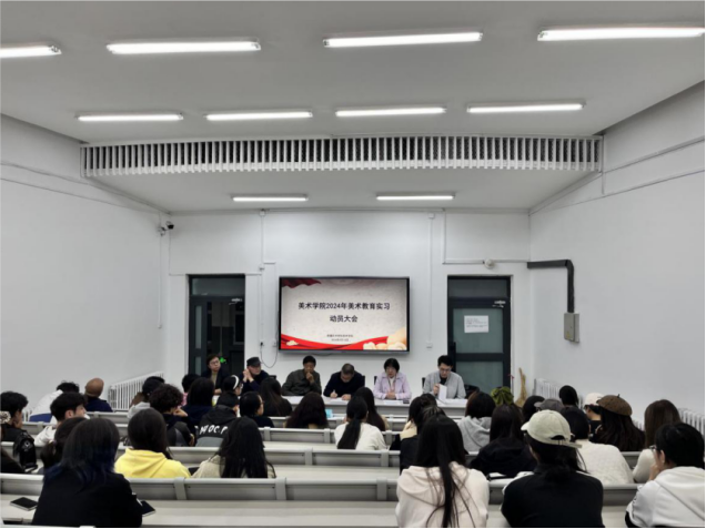 动员会上,美术学院副院长左红卫就本次实习支教做了动员;带队教师李瑾贤介绍了美术教育实习意义及纪律要求,同时对教育实习内容、实习期间安全注意事项进行详细讲解;美术学院党委书记吴保华作了总结讲话。