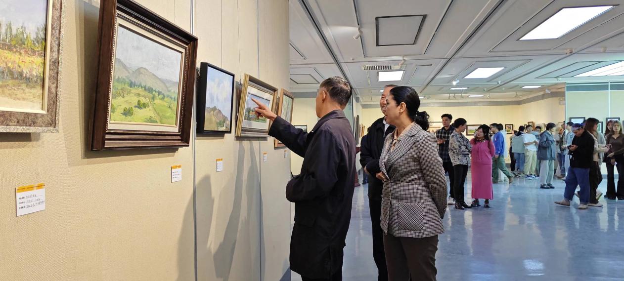 为深入学习贯彻党的二十届三中全会精神,贯彻落实习近平总书记关于教育工作、文艺工作的重要论述和在全国教育大会上的重要讲话精神,喜迎中华人民共和国成立75周年,扎实推进铸牢中华民族共同体意识教育工作走深走实。9月18日上午,“实践采风 绘梦新篇”美术学院实践学期教学成果汇报展在学校美术馆开幕。新疆艺术学院副院长木亚赛尔·托乎提、学校党委常委、统战部长斯尔哈孜·布兰拜参加开幕式,由木亚赛尔·托乎提副院长宣布展览开幕。来自学校相关部门、团结校区各学院师生共计180余人参加了开幕式。