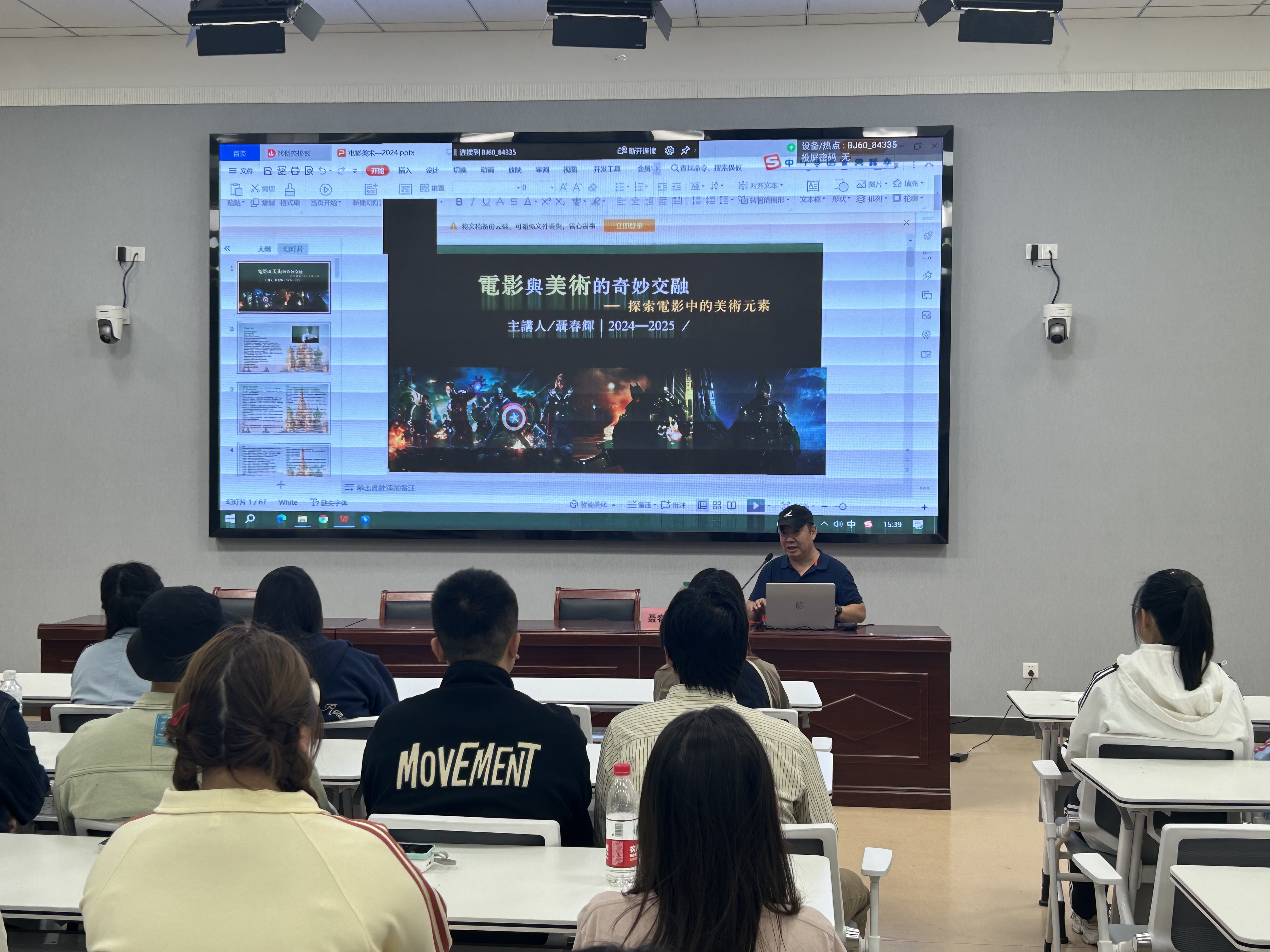 我校“天池学者”来自北京电影学院的聂春辉老师受邀作了题为《电影与美术的奇妙融合——探索电影里的美术元素》的专题讲座。讲座主要围绕“什么是电影美术、电影美术的工作流程,电影与绘画、电影与色彩”四个方面展开。讲座中聂春辉老师通过影片案例展示了色彩在营造氛围、塑造人物和推动情节发展中的关键作用,他强调绘画不仅是电影美术的灵感来源,也是影片中不可或缺的元素,进而引导同学们在美术专业领域中要不断拓阔专业视野,深入实际获取创作元素,积极进行创作。