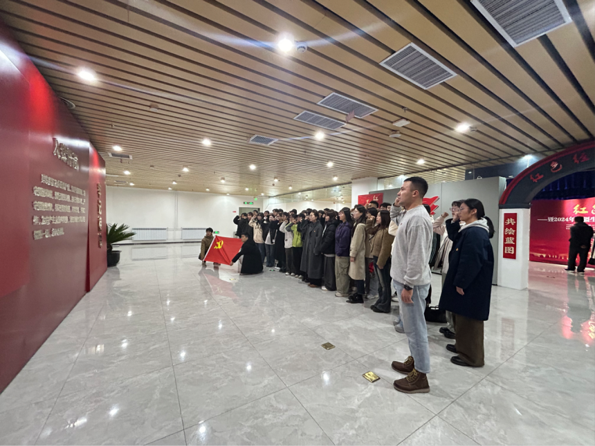2024年9月28日美术学院美术学系学生党支部、绘雕系学生党支部、研究生党支部组织学生党员前往八路军驻新疆办事处纪念馆开展“传承红色基因,赓续红色血脉”主题党日活动。活动中,组织学生党员进行了重温入党誓词、参观馆藏文物以及观看纪录片等活动。