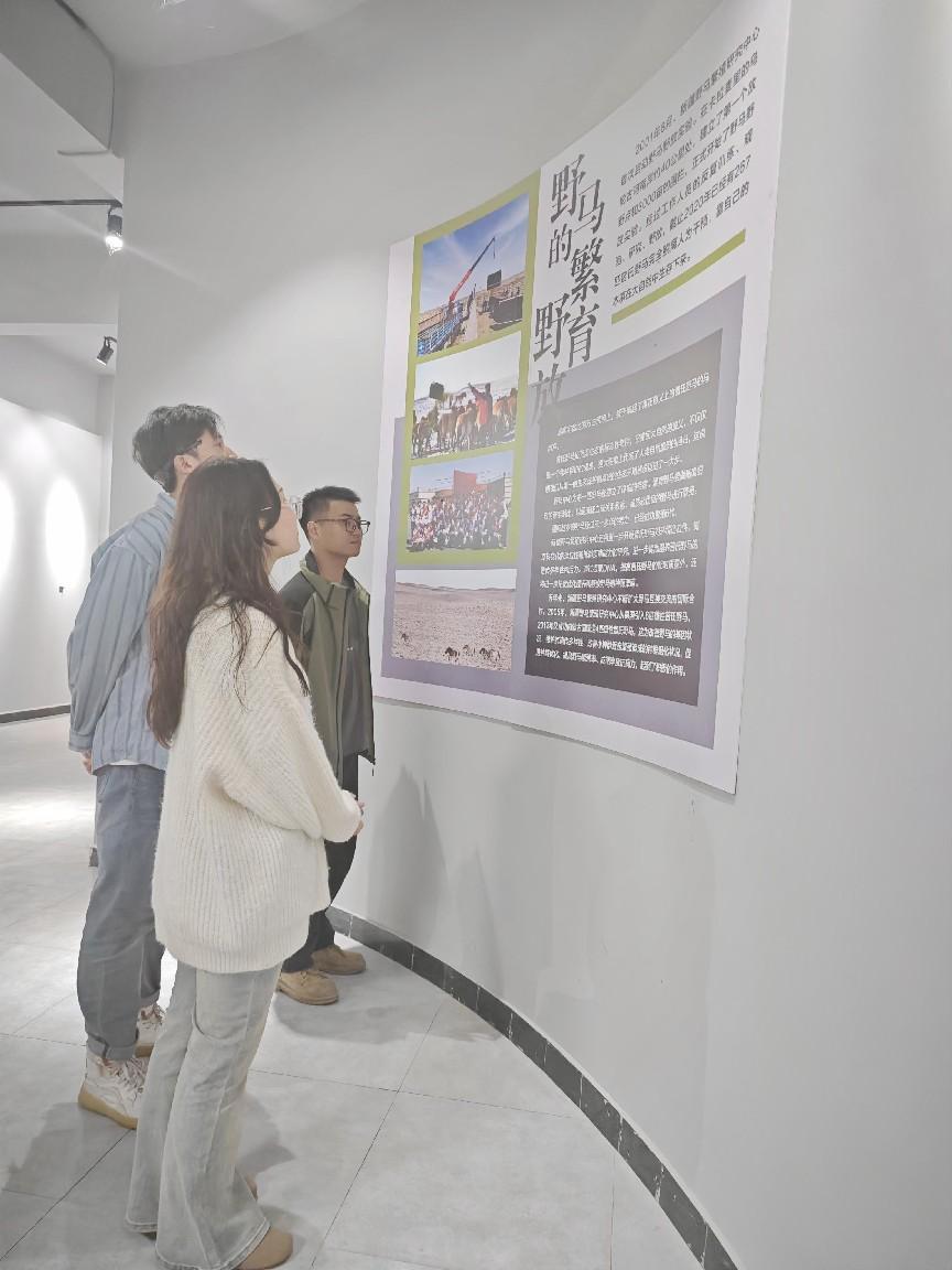 最后,我院师生党员们还前往了新疆野马繁殖研究中心科普馆,参观了野马生活习性展区。这里详细展示了野马的形态特征、生活习性以及分布范围等信息。通过观看逼真的模拟场景和生动的解说,大家对准格尔野马有了更加直观和深入的了解,深刻认识到了保护野生动植物、保护生态环境的重要性。