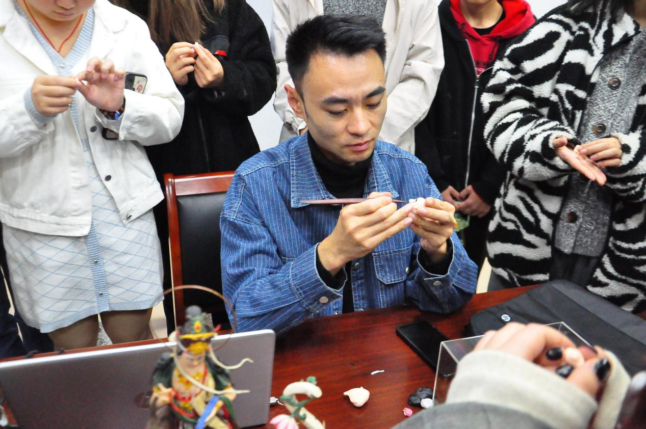 非遗传承人吴绍杰介绍了软陶和泥彩塑的相关内容,并结合自身创业经历大学生如何提升就业创业能力做了分享。鼓励同学们努力提升自身专业素质,传承创新精神,积极参加各类比赛,在创业道路上找到自己的闪光点