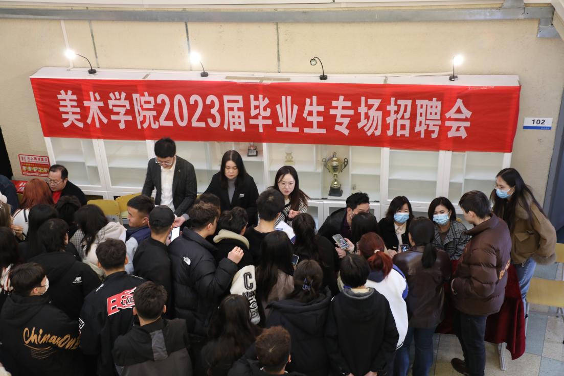 为进一步贯彻落实学校党委关于做好2023届毕业生就业工作的部署安排,2023年3月23日“抢抓招聘关键期 全力攻坚促就业”春季校园专场招聘会—美术学院专场活动正式开始。来自社会相关艺术培训机构、公司、学校等用人单位到校进行毕业生现场招聘,共提供就业岗位38个,150名来自美术学院的本硕毕业生参加了此次招聘会。