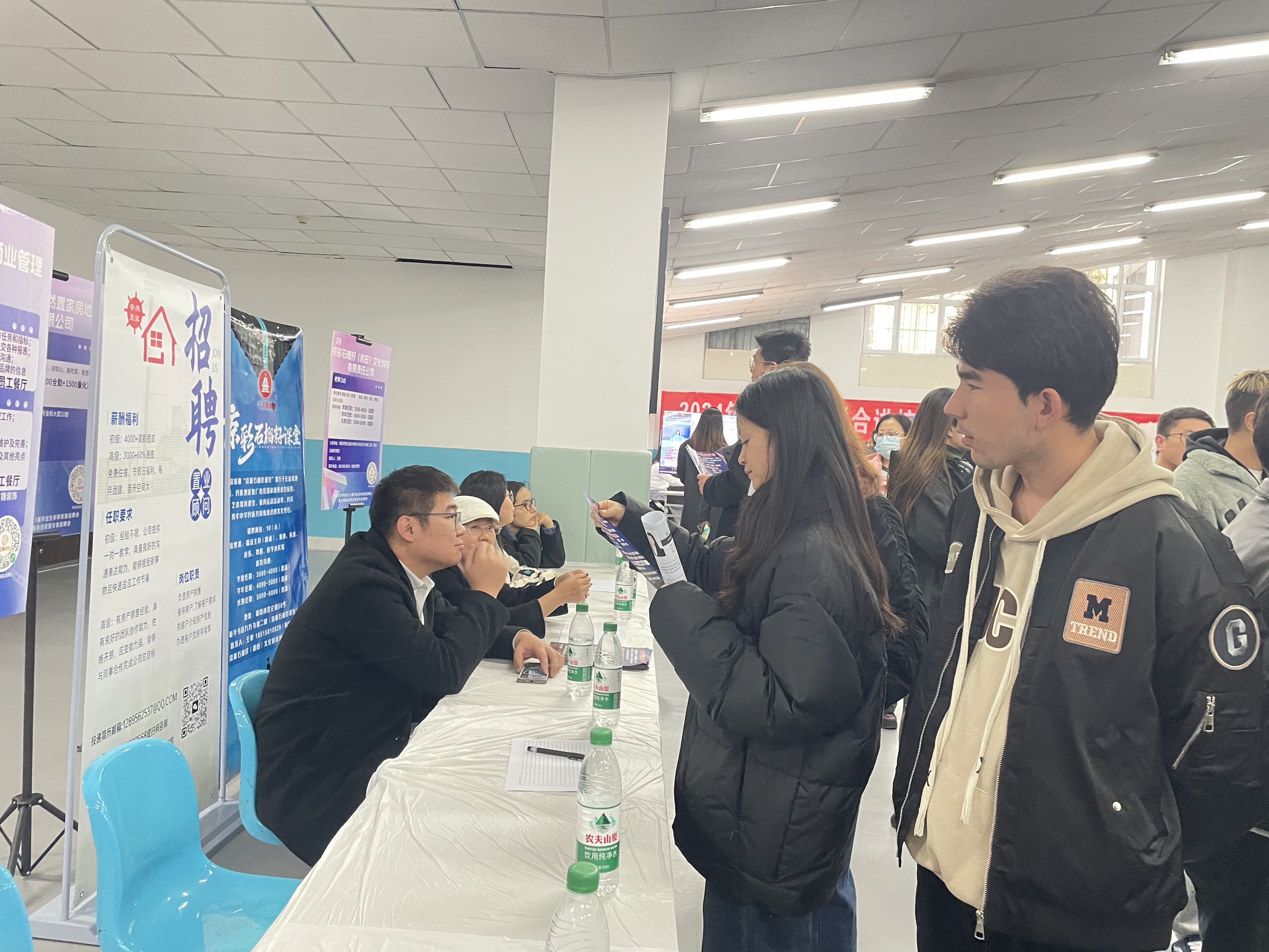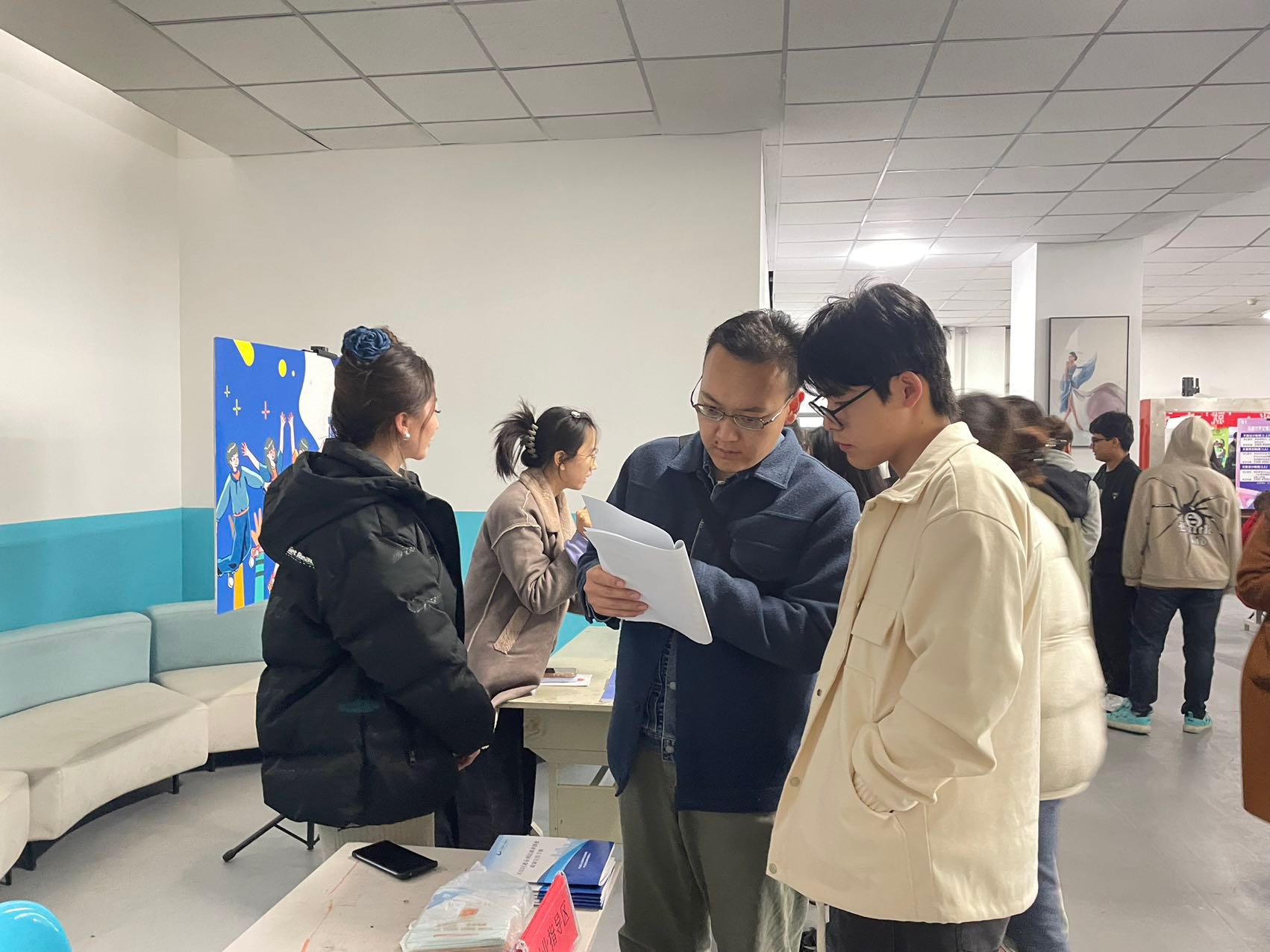 招聘会场,同学们积极寻求心仪岗位,了解就业信息并投递简历