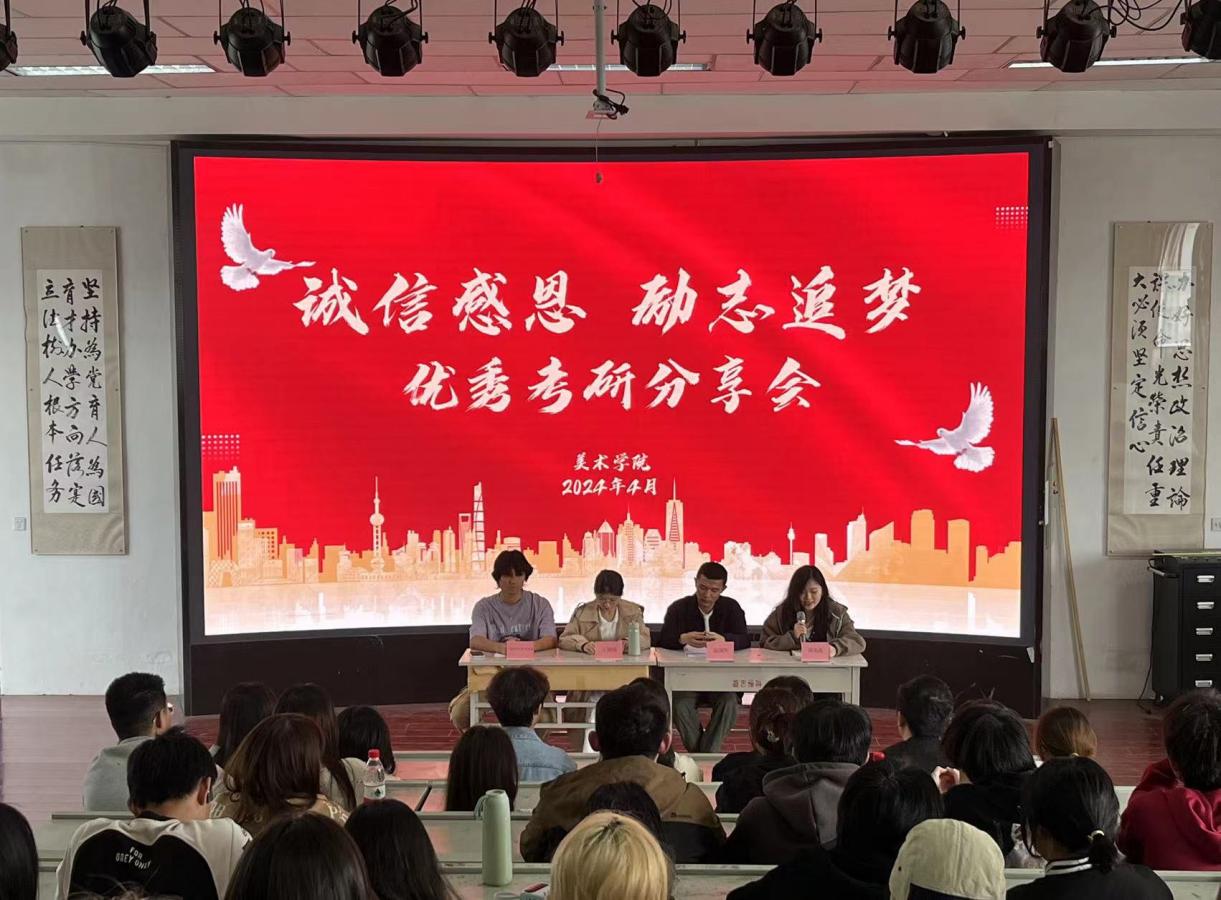 为提升资助育人实效,发挥受助优秀学生的榜样引领作用,激励广大学生感恩励志、奋发图强,2024年4月24日,美术学院在图书馆6楼教育实践基地举办树立优良学风,感恩励志育人专题分享会,来自不同年级的80余名同学前来参加。