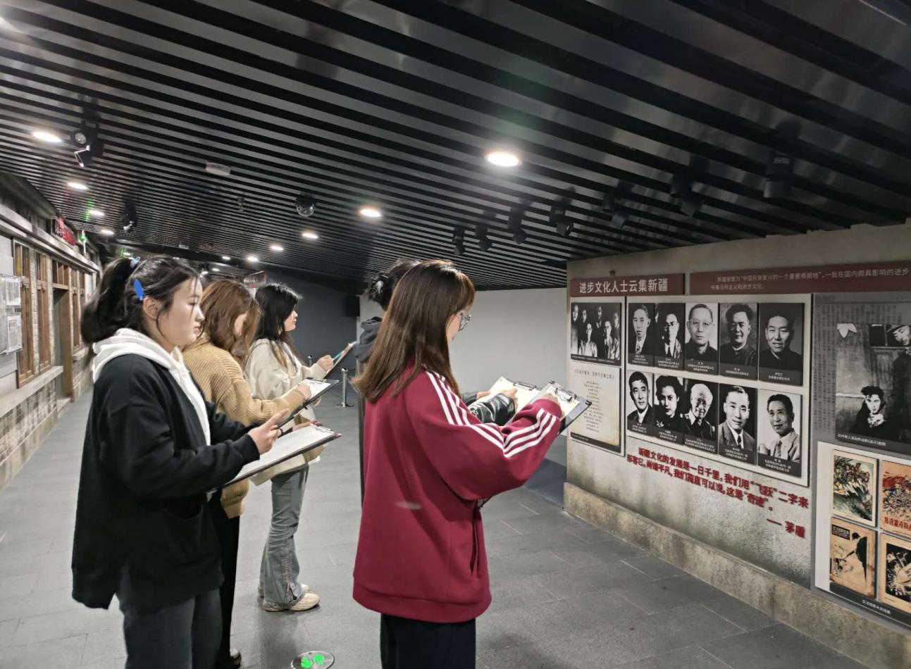 活动中,讲解员结合党史文献、珍贵文物、革命视频等,向同学们详细讲述了以陈云、邓发、陈潭秋、毛泽民等同志为代表的中国共产党人,在新疆进行抗日救亡运动的艰难历程。接着,同学们通过给英雄人物画像的方式,用画笔实现与历史的时空对话,用心灵感悟伟大的革命精神。