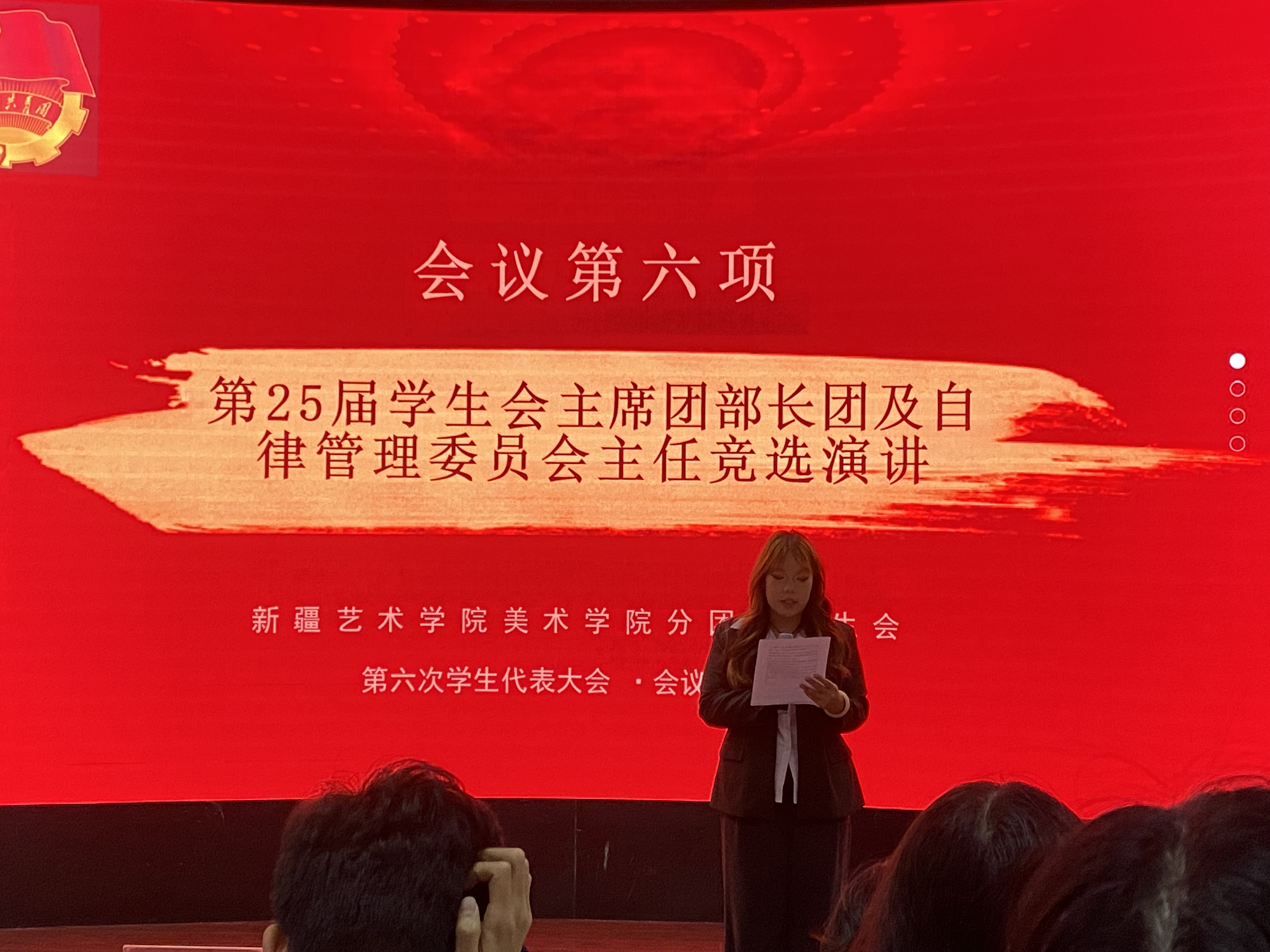 大会听取并审议第二十四届美术学院学生会主席团及自律管理委员会主任及美术学院分团委学生会部长团述职工作报告,以及第二十五届美术学院学生委员会、主席团及自管会主任竞选演讲。经过公开、公平、公正的选举,美术学院第二十五届分团委学生会主席团、部长团及自律管理委员会主任名单公布。